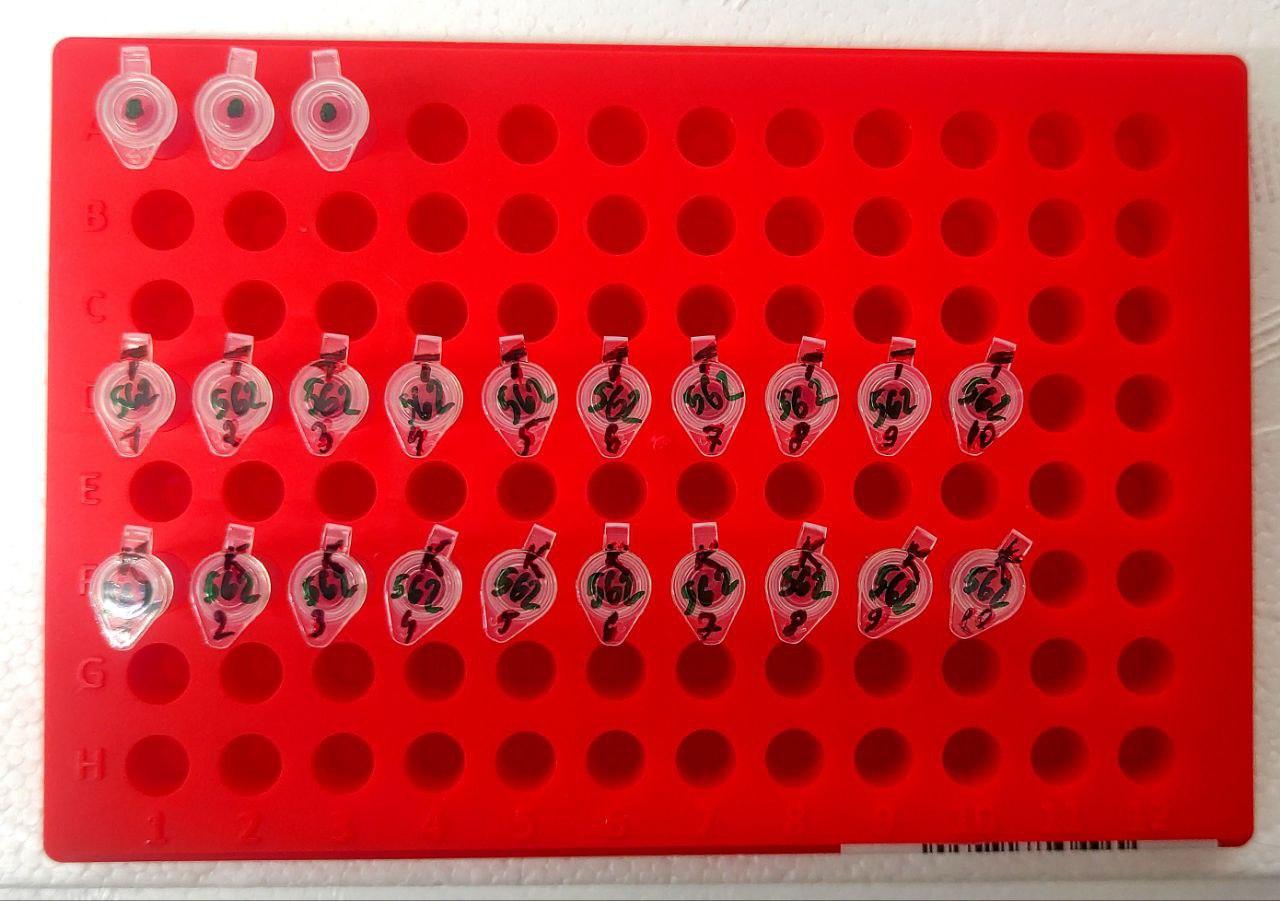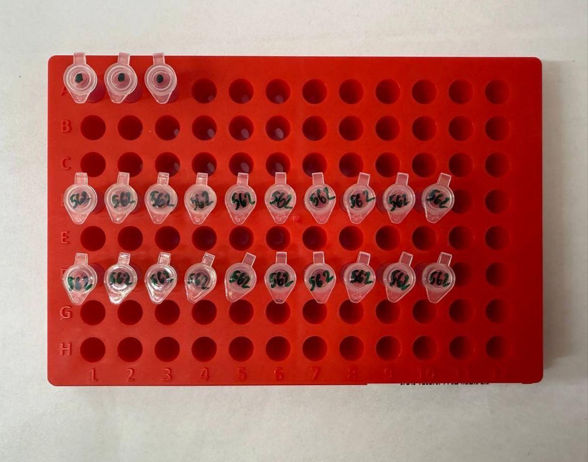 Пробирки для клеток трофэктодермы и контролей подписаны с использованием последних трёх цифр штрихкода, напр. «467». После помещения биоптата на крышке пробирки рядом с имеющимся номером укажите «Т» и номер образца. На пробирке с контролем укажите «К» и номер образца. Пробирки, не содержащие образцы и/или контроли, выбросьте из штатива.